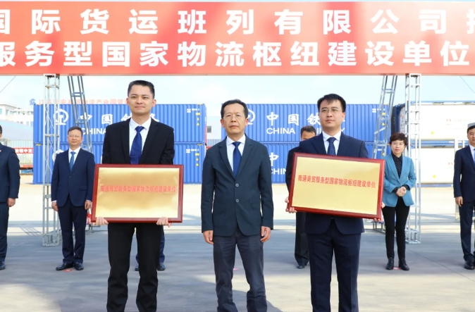 10月31日 南通市国际货运班列有限公司揭牌 暨南通商贸服务型国家物流枢纽 授牌仪式 在我市商贸物流园举行