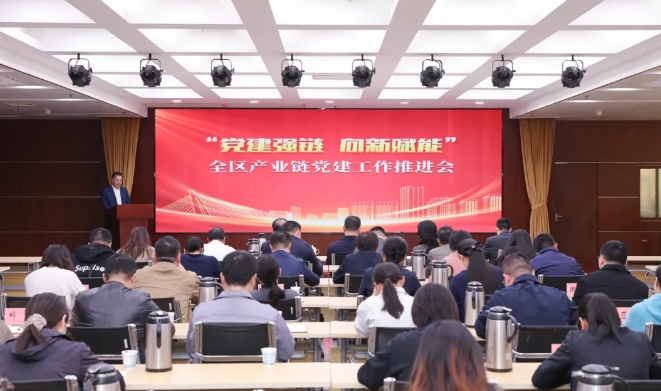 为认真贯彻落实新时代党的建设总要求,全面落实省、市组织部长座谈会关于产业链党建工作部署,纵深推进基层党建“深根工程”,以高质量党建加快推进我区重点产业链强链、补链、延链,11月12日上午,我区召开“党建强链、向新赋能”产业链党建工作推进会。市委金融工委副书记方晓波出席会议,区委常委、组织部部长、统战部部长施骁毅参加会议并讲话。