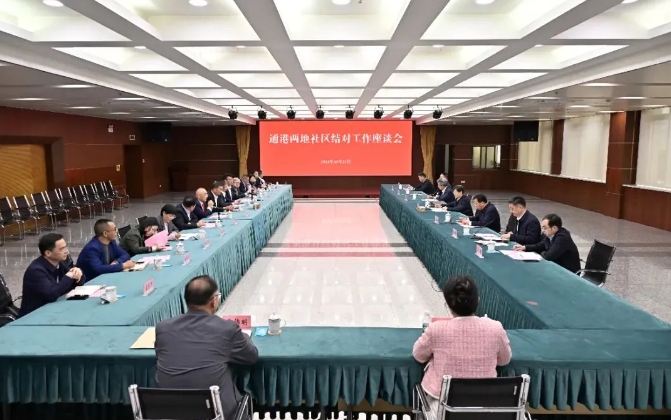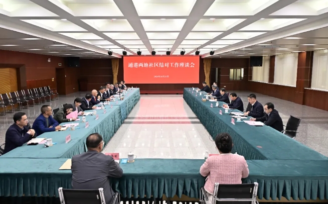 10月23日下午,通港两地社区结对工作座谈会在区行政中心召开。市委常委、区委书记张建华出席会议。