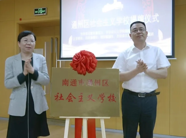 • 施骁毅为南通市通州区社会主义学校揭牌。