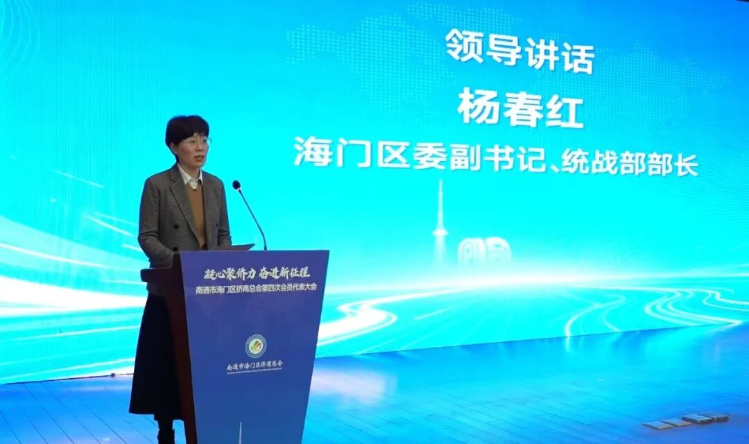 杨春红代表海门区委、区政府向大会的顺利召开及新当选的新一届领导班子表示祝贺,对南通市海门区侨商总会第三届理事会的工作成效给予充分肯定。杨春红希望新一届侨商总会当好凝聚侨心的“粘合剂”,把侨界力量聚起来;当好赋能发展的“助推器”,把侨智侨资用起来;当好彰显担当的“排头兵”,把侨商精神传下去,团结带领广大侨商为海门高质量发展现代化建设新篇章作出新的更大贡献。